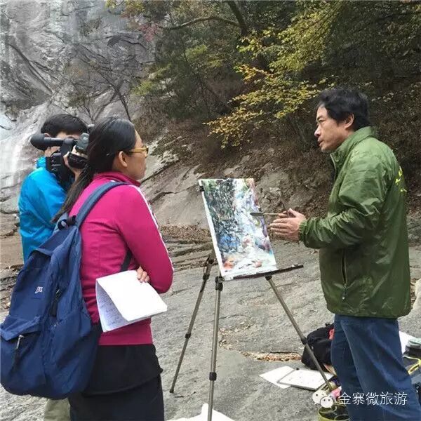 26日,参加采风活动的旅日艺术家们游览了金寨红军广场、梅山湖等县内重点景区,了解了金寨红色革命文化和革命历史,领略了金寨美丽的自然风光,对金寨这片神奇而美丽的土地产生了浓厚的兴趣。27日,艺术家们来到5A级旅游景区天堂寨景区进行采风写生。一到景区门口,艺术家们就被眼前的美景所吸引,面对山川景物,他们迅速投入到艺术创作中去,不多时,鲜活而灵动的景物跃然纸上。于此同时,有的艺术家在创作之余不时的取出相机,对着美丽的景物一阵狂拍。