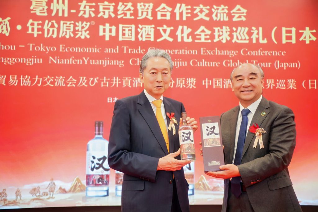 日本前首相鸠山由纪夫高度肯定古井贡酒在中国白酒文化国际推广上所取得的成绩,热情称赞古井提出的“酒是超过国界的世界语言”,表示自己的理念之一是“友爱”,希望今后进一步借助古井贡促进日中两国民间的“友爱”交流。他相信通过亳州与东京之间的城市合作,古井贡酒的浓香将为中日地方层级的经贸合作与文化交流开启全新的篇章。