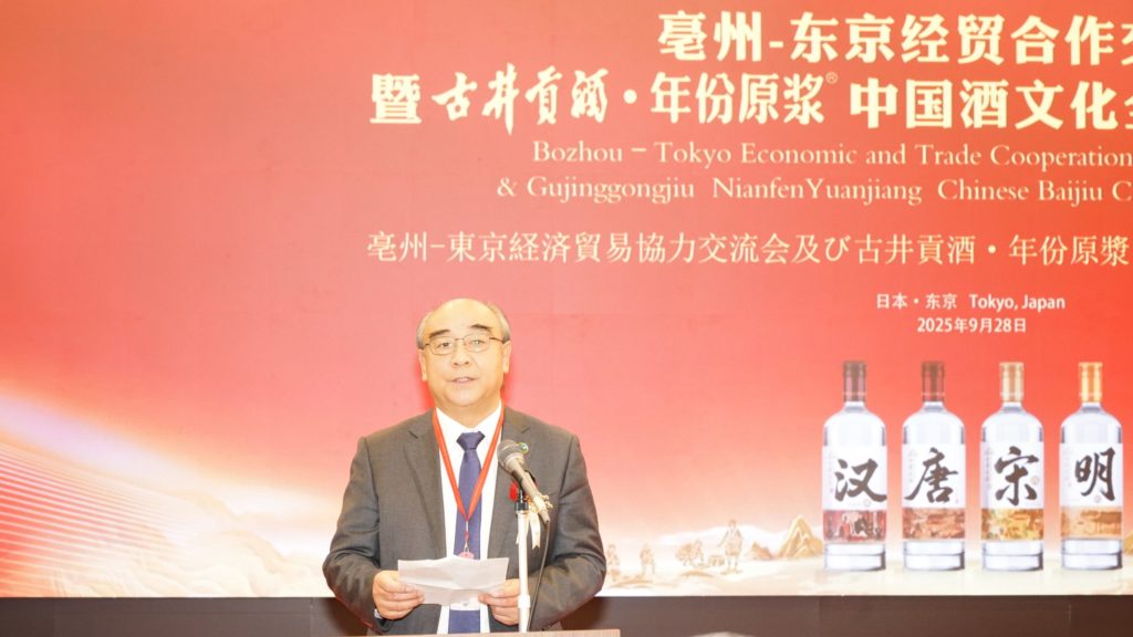 9 月 28 日,亳州——东京经贸合作交流会暨古井贡酒・年份原浆中国酒文化全球巡礼(日本站)活动在位于日本东京的日中友好会馆盛大启幕。这也是古井贡酒继9月26日大阪世博会“古井企业日”圆满闭幕后,又一场在日本的品牌推介盛会。